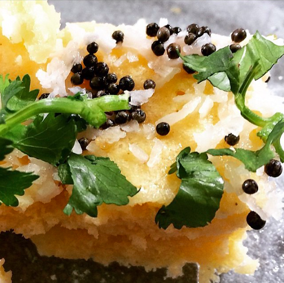 These fluffy bites of deliciousness are a Gujarati delicacy. Dhokla are steamed chickpea flour cakes…and the best part is that they are vegan and gluten free! Eat with your hands and enjoy!